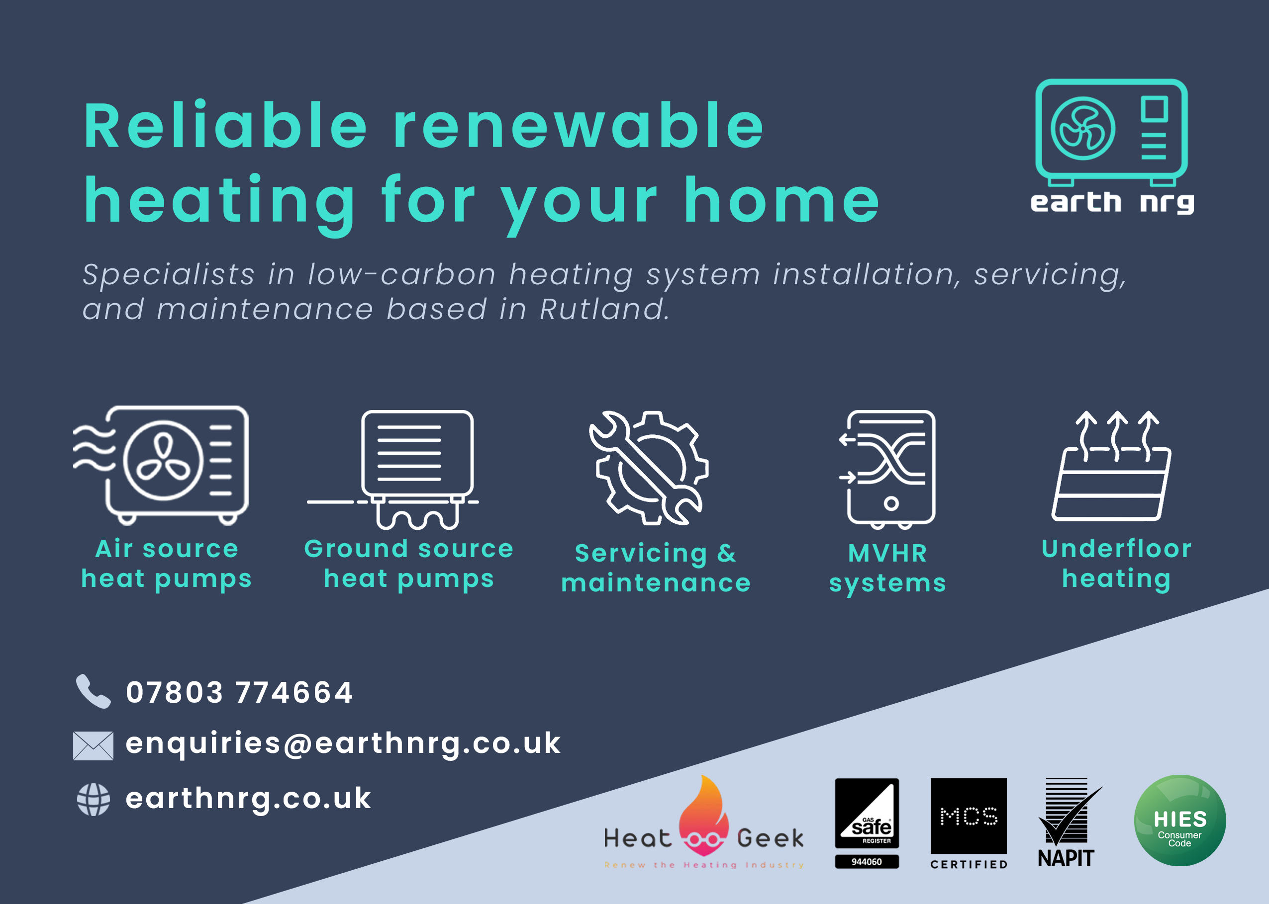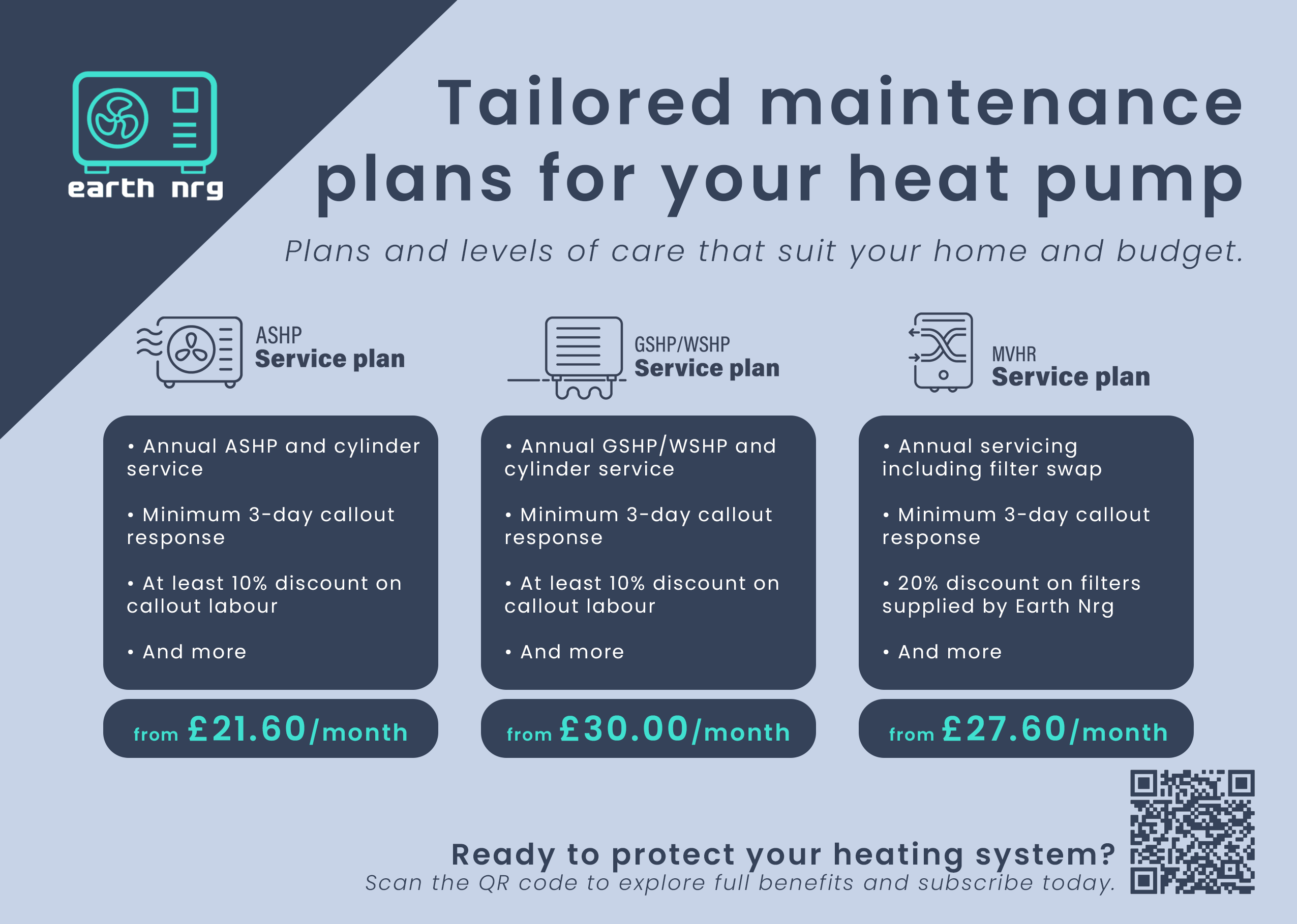 A promotional flyer and web visuals created to launch Earth NRG’s new heat pump service subscriptions — featuring custom icons to illustrate each service tier.